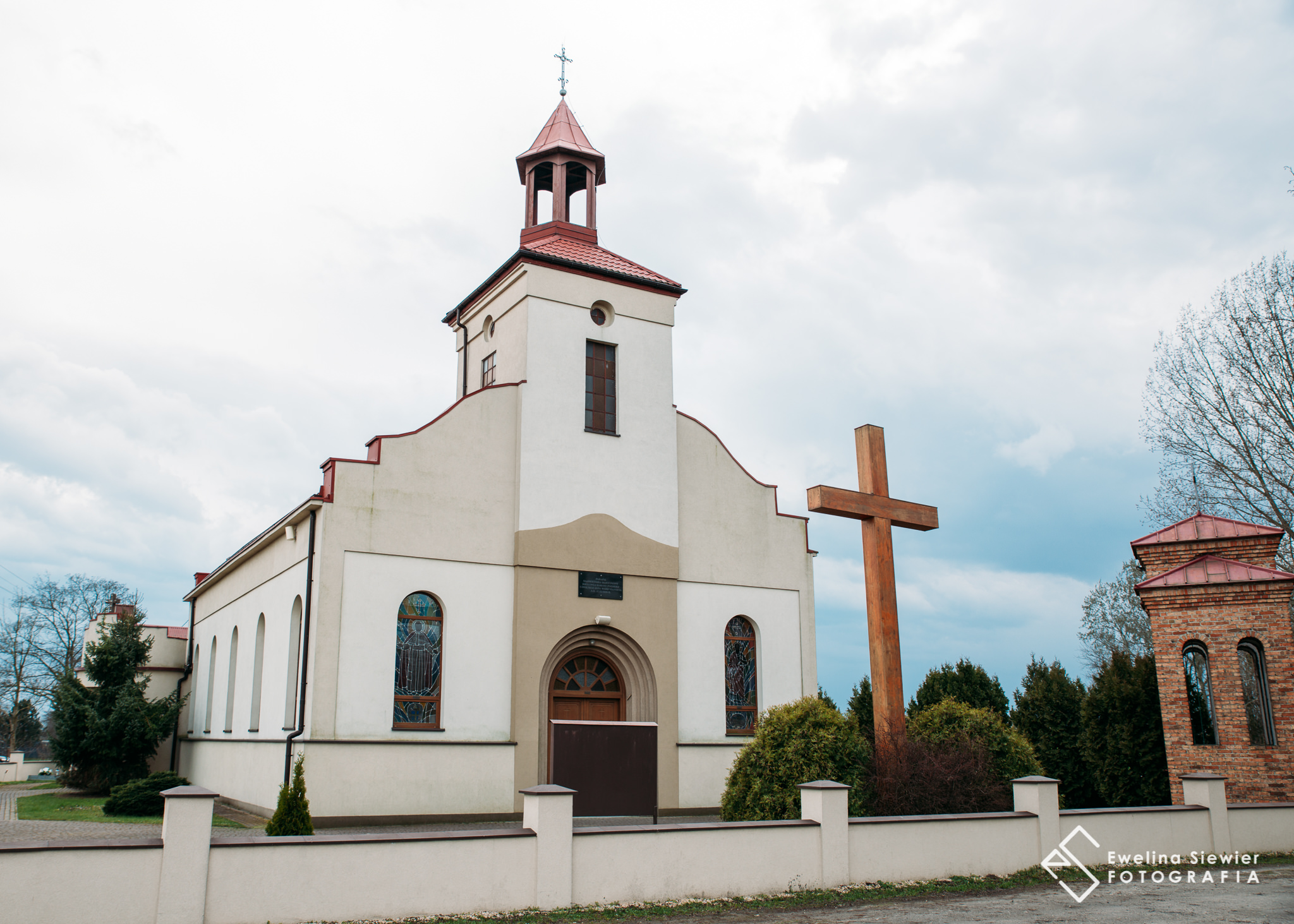 Przed kościołem w Woli Kamockiej jestem pierwsza, jeszcze przed rodziną. Już jakiś czas temu fotografowałam tam chrzest Ali, o którym pisałam też na blogu- ten wpis znajdziecie TUTAJ. Pogoda zaczyna się zmieniać, po niebie coraz szybciej zaczynają sunąć chmury. Będzie padać…
