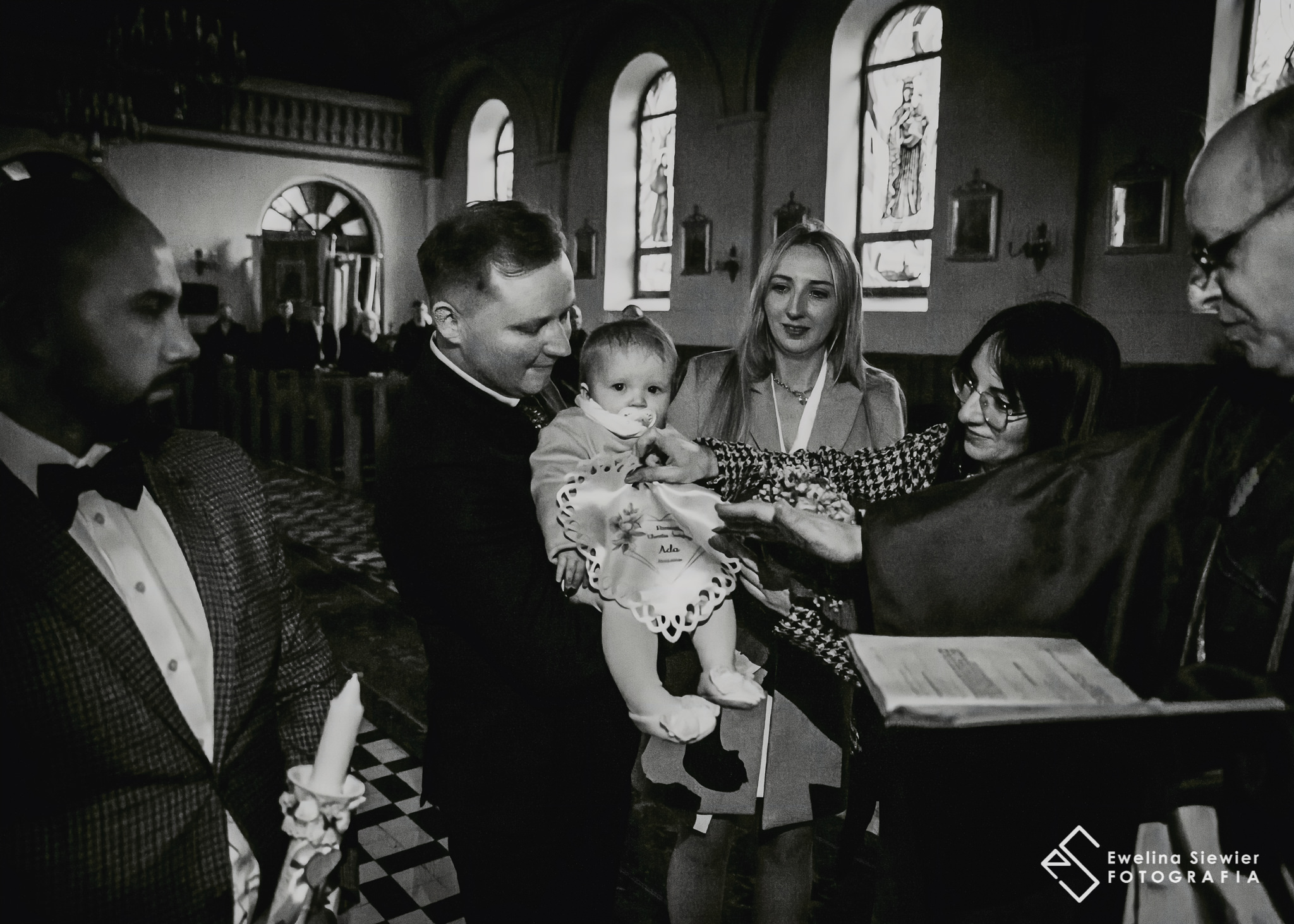 Światła nadal było niewiele, ale na tyle dużo, że widziałam już coś w wizjerze, a i ksiądz był w stanie dalej prowadzić obrządek chrztu.