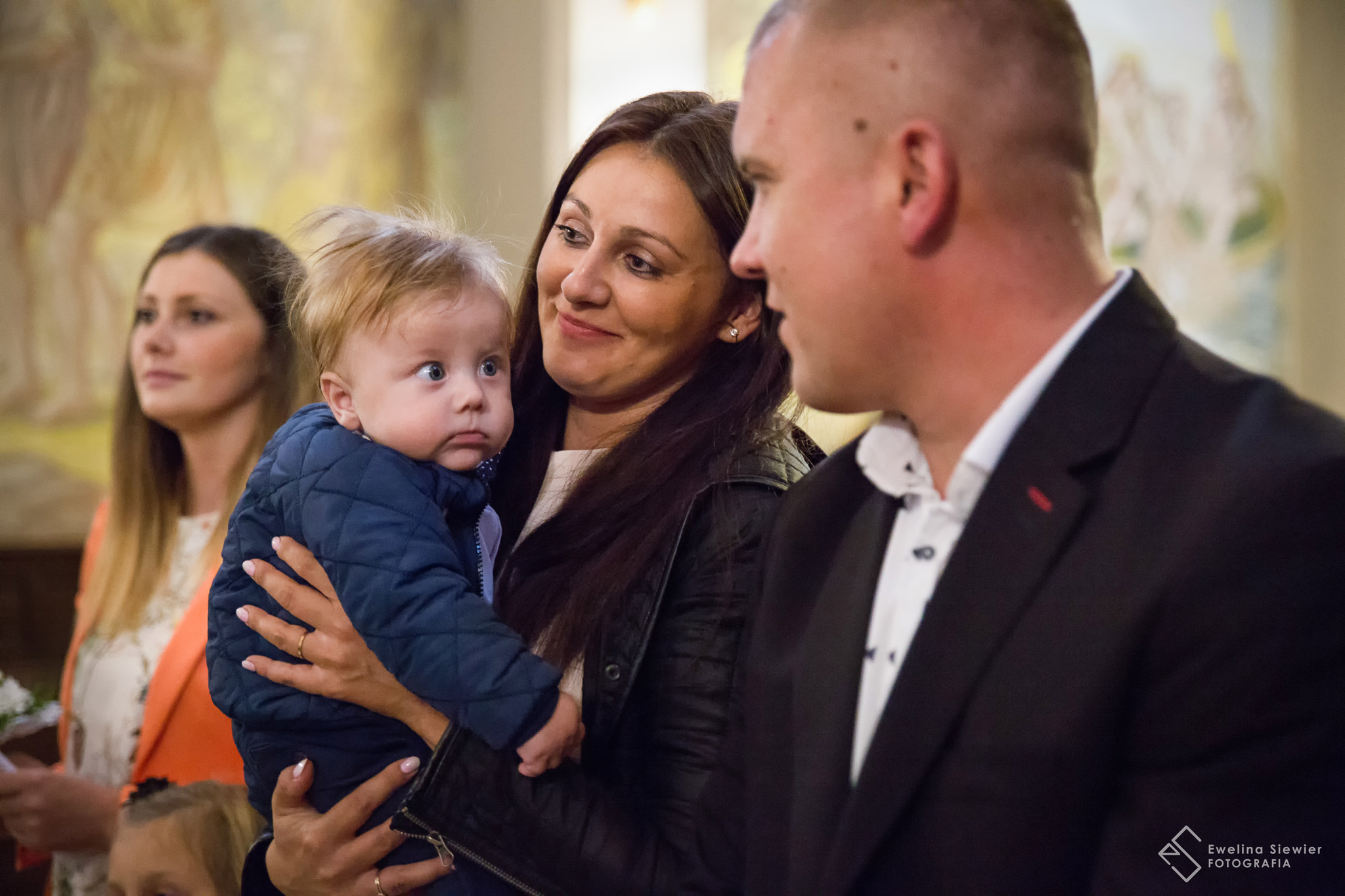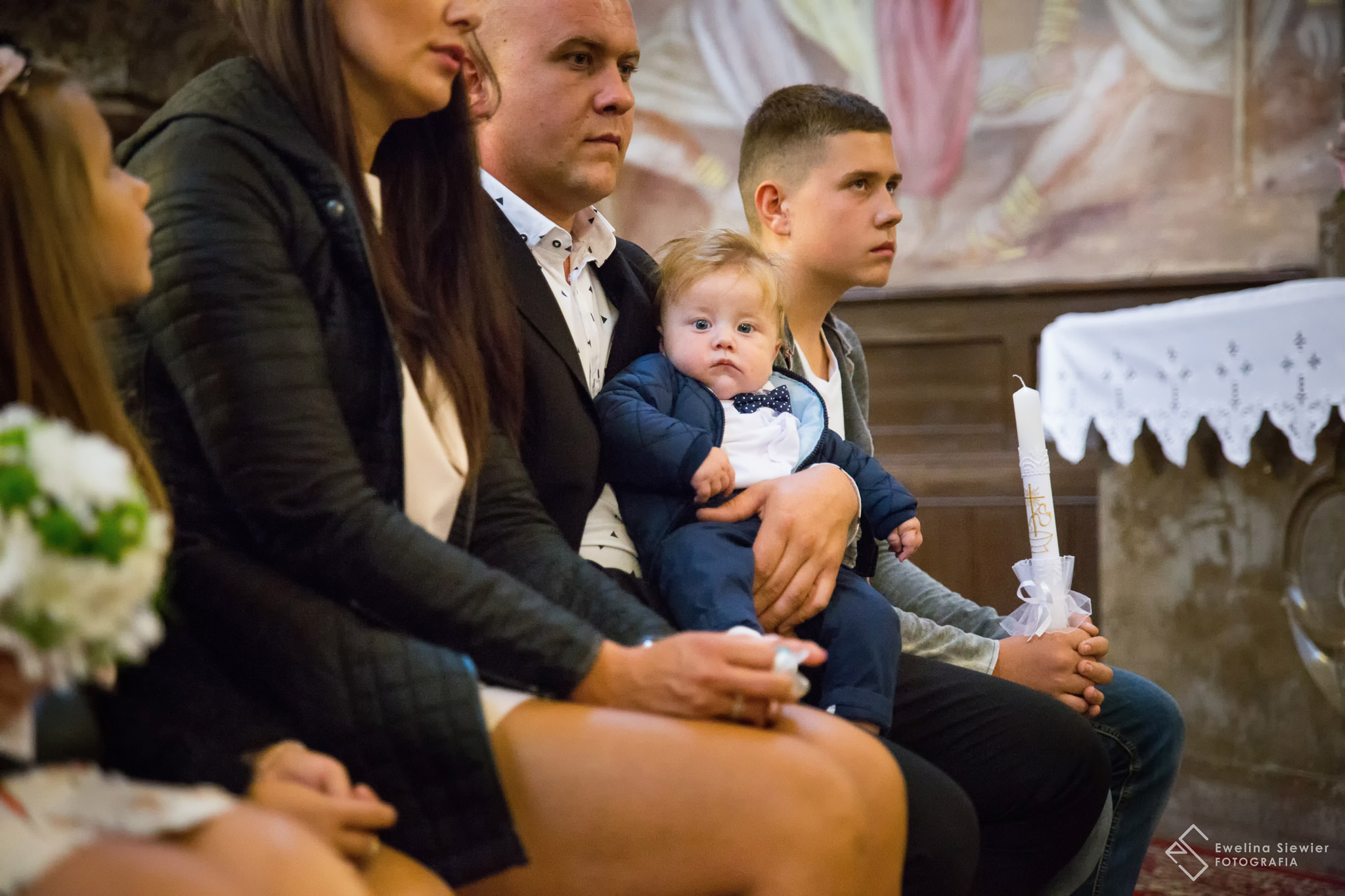 Natan całą uroczystość spędził grzecznie na kolanach rodziców, nawet polewanie główki nie zrobiło na nim wielkiego wrażenia.