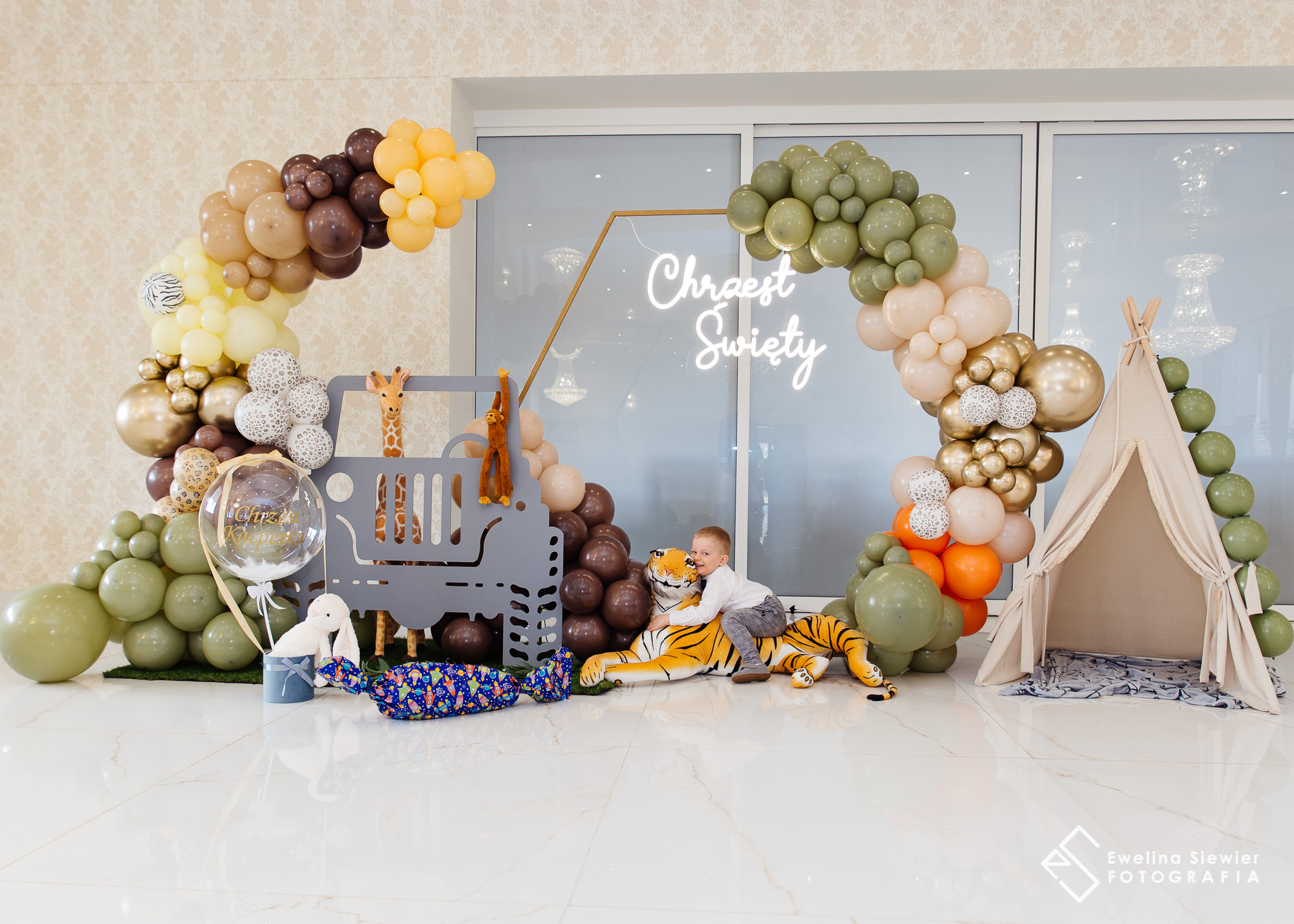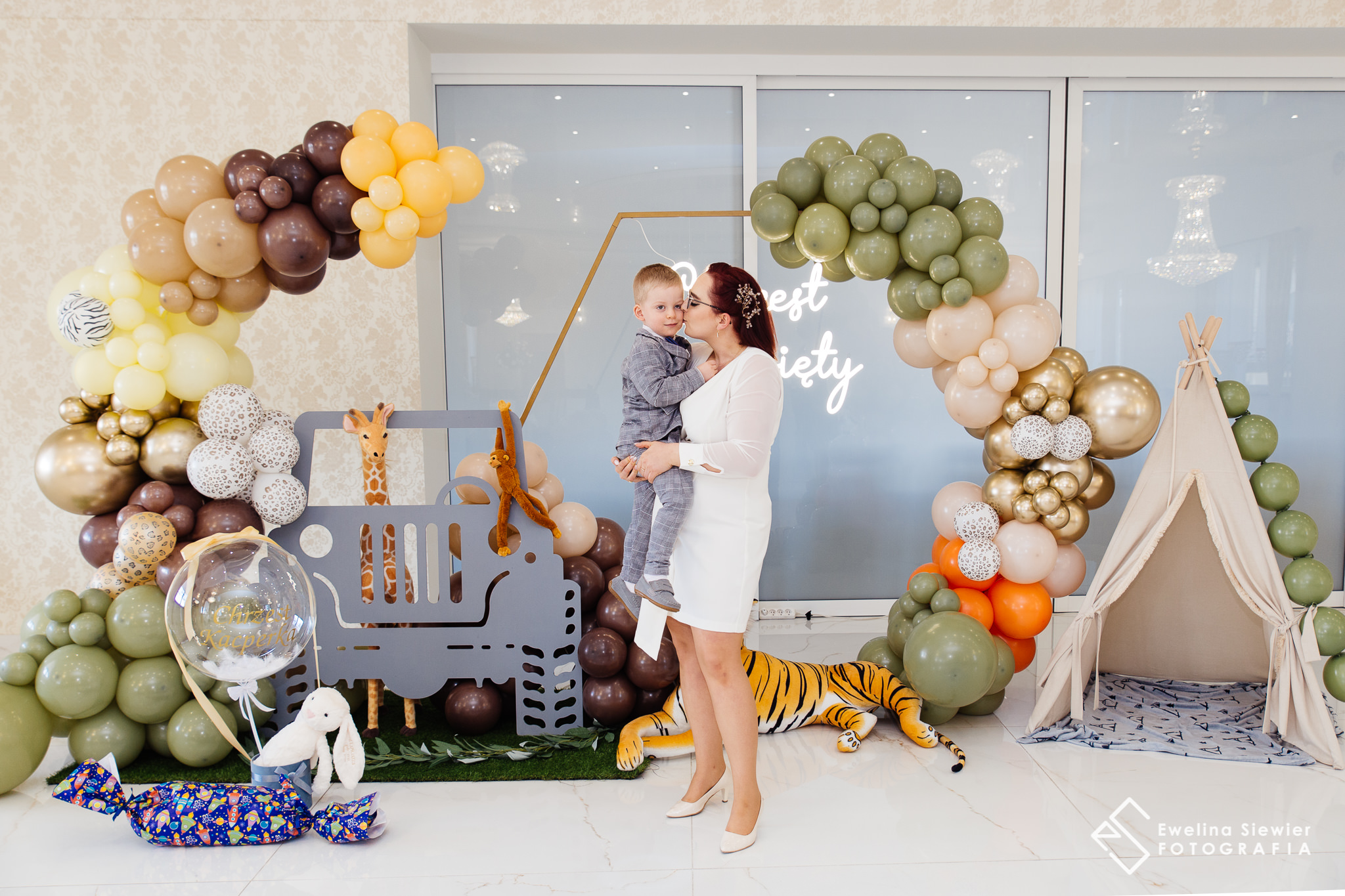 Na sali Angelika zadbała o wspaniałą ściankę do zdjęć z motywem safari. Byli nią zachwycone nie tylko dzieci, ale i dorośli! 🙂