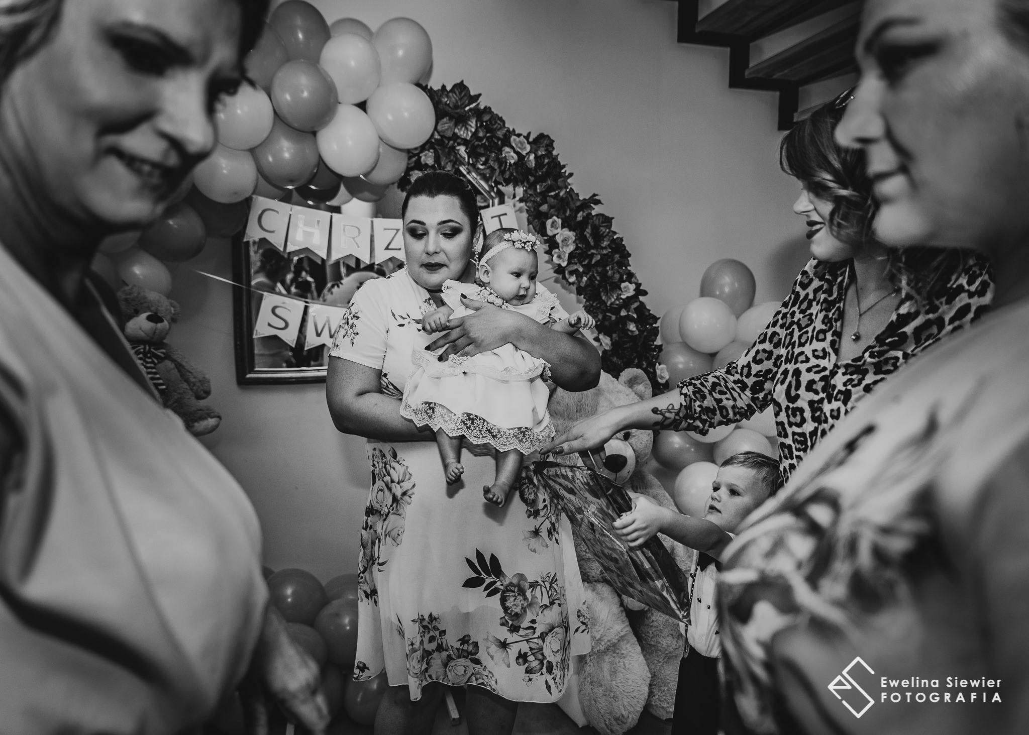 Podczas przyjęcia powstały zdjęcia pełne uśmiechów, bliskości i detali: dekoracji, tortu oraz spontanicznych chwil spędzonych razem. Tego typu kadry doskonale uzupełniają reportaż z chrztu świętego.
