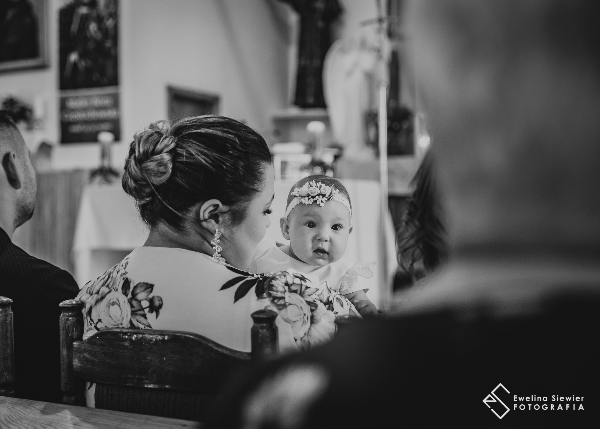 Chrzest święty to jedno z najważniejszych wydarzeń rodzinnych, ponieważ łączy w sobie wzruszenia, symbolikę oraz bliskość najbliższych. Ten reportaż fotograficzny z chrztu świętego został wykonany dla Niny w kościele w Woli Krzysztoporskiej, niedaleko Piotrkowa Trybunalskiego, a dalsza część uroczystości odbyła się w eleganckim Dworze Kasztelan w Stefanówce.