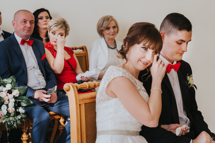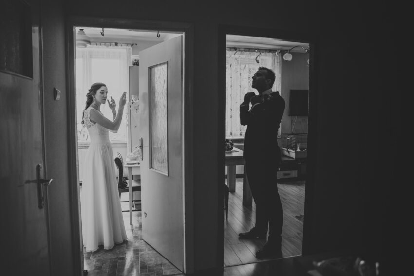 Podczas reportażu ślubnego staram się fotografować bardzo dyskretnie, by na zdjęciach uwieczniać prawdziwe emocje i zachowania zarówno Wasze, jak i Waszych gości. Nie kreuje, nie ustawiam – fotografuję zastaną chwilę. Przed ślubem proszę o przygotowanie jednym miejscu takich rzeczy jak m.in. Wasze obrączki, zaproszenia ślubne, wiązanka Panny Młodej, biżuteria, suknia ślubna, buty, mucha itp. Fotografowanie w dniu ślubu zaczynam właśnie od zdjęć takich detali. Dzięki temu Wasza rodzina i przyjaciele przyzwyczaja się do mojej obecności są mniej zestresowani. Po uwiecznieniu detali zaczynam fotografować przygotowania – zazwyczaj początkiem są ostatnie muśnięcia pędzla na twarzy Panny Młodej. Chcesz wiedzieć więcej? Zapraszam do kontaktu ze mną 🙂