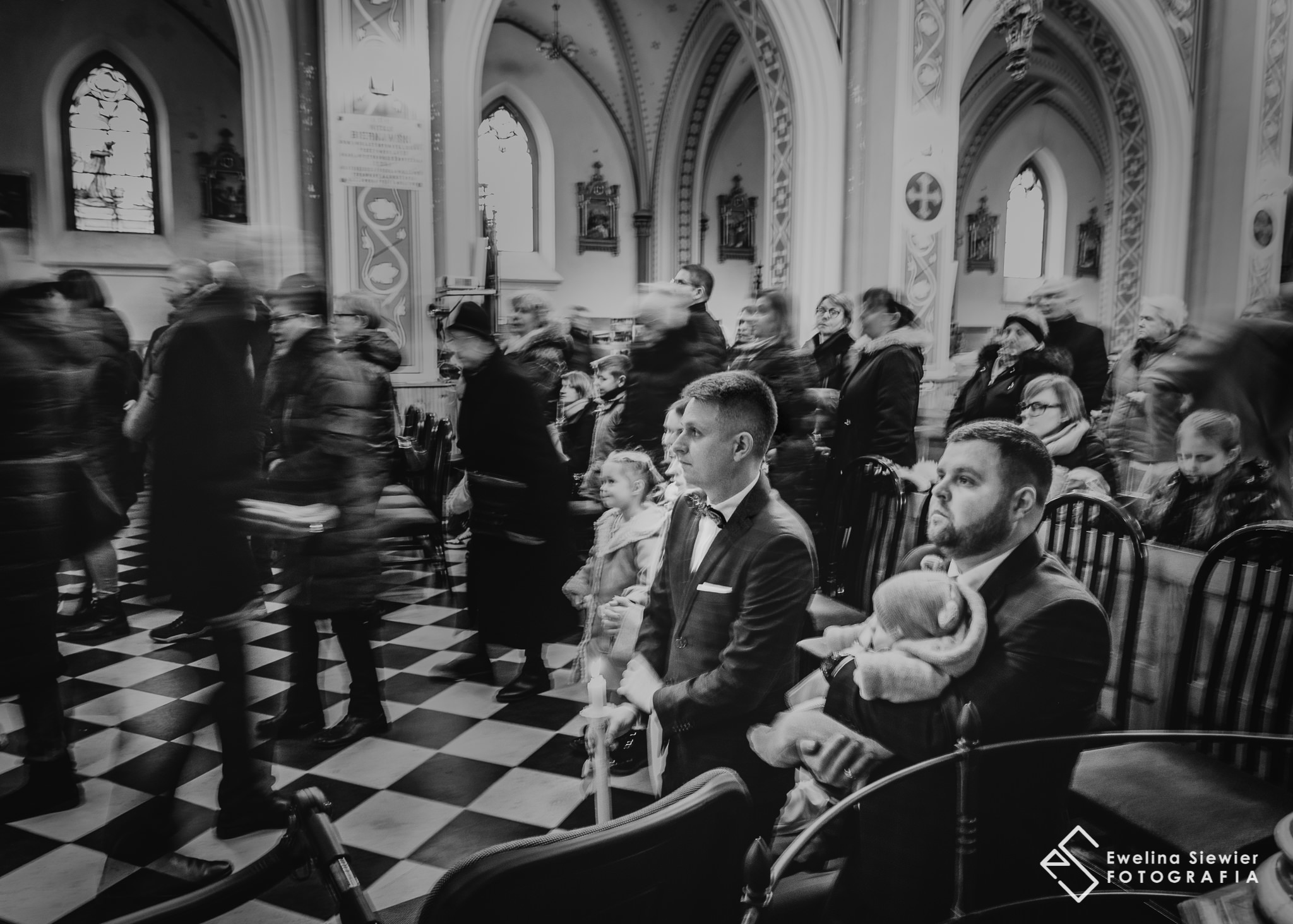 Podczas ceremonii staram się pracować dyskretnie, aby nie zakłócać przebiegu liturgii, a jednocześnie uchwycić najważniejsze momenty – polanie główki wodą święconą, zapalenie świecy czy błogosławieństwo rodziców i chrzestnych.