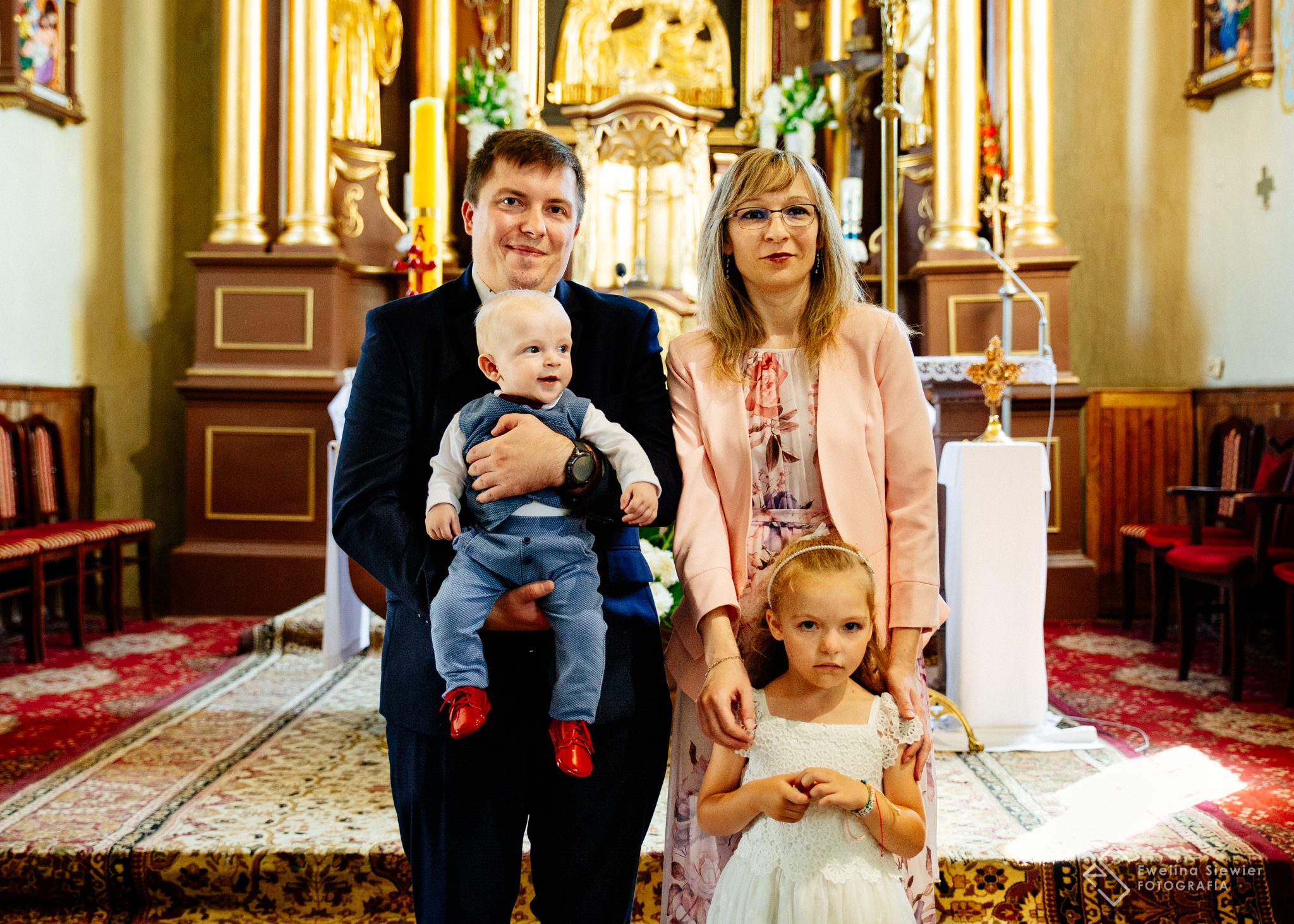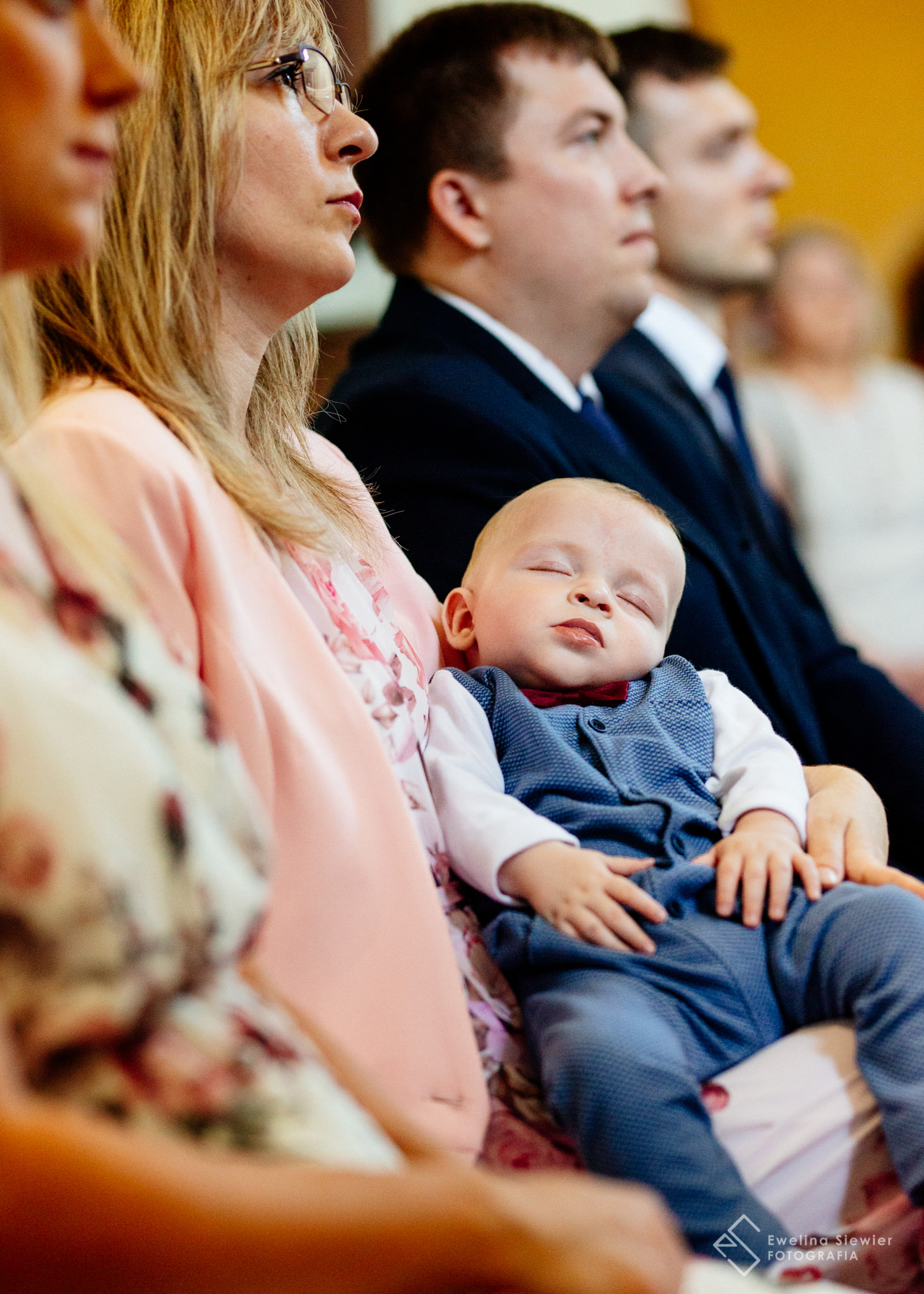 Na szczęście miałam przyjemność współpracować z przemiłym księdzem i kościelnym, którzy mimo tak małej ilości miejsca dawali mi też przestrzeń do wykonania swojej pracy. Zobaczcie sami jak pięknie wygląda moment polewania Wojtkowi główki. Każdy z obsługi wie, co ma robić i jak ma robić , by każda osoba wykonała swoją pracę idealnie.